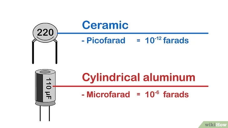 Los capacitores más pequeños (los hechos de cerámica, película o tantalio) utilizan unidades de picofarads (pF), lo que equivale a 10-12 farads. Por su parte, los capacitores más grandes (los del tipo electrolítico cilíndricos hechos de aluminio o los de doble capa) utilizan unidades de microfarads (uF o µF), lo que equivale a 10-6 farads.Un capacitor puede ignorar esta norma al agregar una unidad después del código de capacitancia (“p” para picofarad, “n” para nanofarad o “u” para microfarad). No obstante, si solo hay una letra después del código, esta generalmente representará el código de tolerancia y no la unidad (P y N son código de tolerancia poco comunes, pero existen).