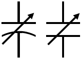 DEFINICIÓN : Un condensador variable es un condensador cuya capacidad puede ser modificada intencionalmente de forma mecánica o electrónica. Son condensadores provistos de un mecanismo que tienen una capacidad ajustable entre diversos valores a elegir, o bien tienen una capacidad variable dentro de grandes límites. Los primeros se llaman trimmers y los segundos condensadores de sincronización, y son muy utilizados en receptores de radio, TV, etc, para igualar la impedancia en los sintonizadores de las antenas y fijar la frecuencia de resonancia para sintonizar la radio.