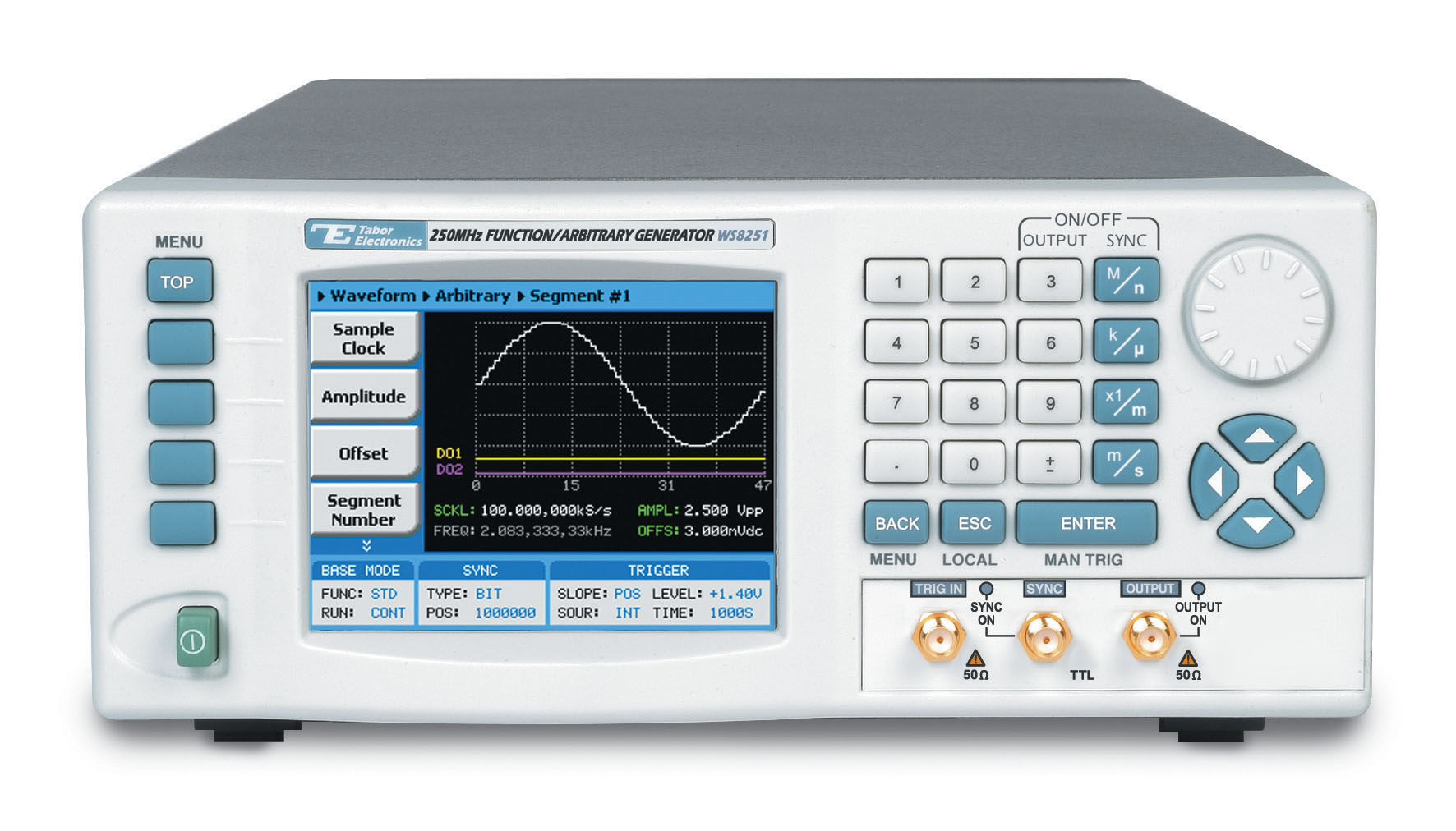 Aparato electrónico que produce ondas sinusoidales, cuadradas y triangulares, además de crear señales TTL. Sus aplicaciones incluyen pruebas y calibración de sistemas de audio, ultrasónicos y servo.