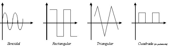 En la figura de la derecha pueden observarse algunos ejemplos de ondas de distintas corrientes periódicas. Los tipos a, d y e son corrientes alternas y b, c y f son pulsatorias.