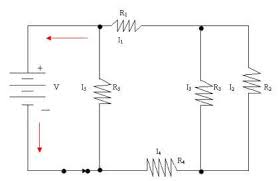 PRIMERA LEY : La primera ley de Kirchhoff nos indica que la suma de todas las corrientes que pasan por un nodo o unión es proporcional. El resultado de las corrientes de entrada a ese nodo menos las corrientes de salida es igual a cero