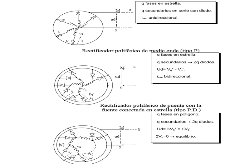 - DEFINICIÓN : Un rectificador trifásico o convertidor trifásico es un dispositivo electrónico capaz de convertir una corriente alterna de entrada en una corriente continua de salida, mediante dispositivos semiconductores capaces de manejar grandes potencias como diodos, tiristores, válvulas de mercurio (usados hace más de 100 años), entre otros. El rectificador trifásico cumple con la misma función que un rectificador monofásico, con la diferencia que estos rectificadores son alimentados por fuentes trifásicas, por lo que son más eficientes y pueden manejar grandes potencias, ya que en su salida presentan menor rizado de la señal. Son utilizados principalmente en la industria para producir voltajes y corrientes continuas que generalmente impulsan cargas de gran potencia, como motores DC. A pesar de que estos rectificadores presentan menos rizo que un rectificador convencional, en muchas aplicaciones el factor de potencia y la distorsión armónica total de la línea se ven afectados, es por ello que se requiere el uso de filtros de armónicos. Una de las aplicaciones en donde se presenta este fenómeno, es en los enlaces de transmisión de alto voltaje (HVDC), en donde las estaciones de conversión cuentan con filtros de armónicos que reducen la distorsión en la señal que producen los convertidores, para que sea transmitida con calidad y no se introduzcan perturbaciones a la red eléctrica.