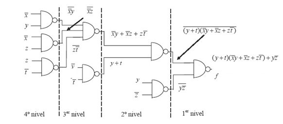 Compleméntense todas las variables que entren en el circuito en un nivel impar.