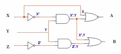 Considérense como puertas AND todas las puertas NOR en nivel impar.